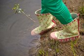 U kunt het ook dichterbij zoeken: naast het bezoekerscentrum ligt de speelnatuur van OERRR met waterpomp en modderglijbaan. Hier komen laarzen goed van pas.